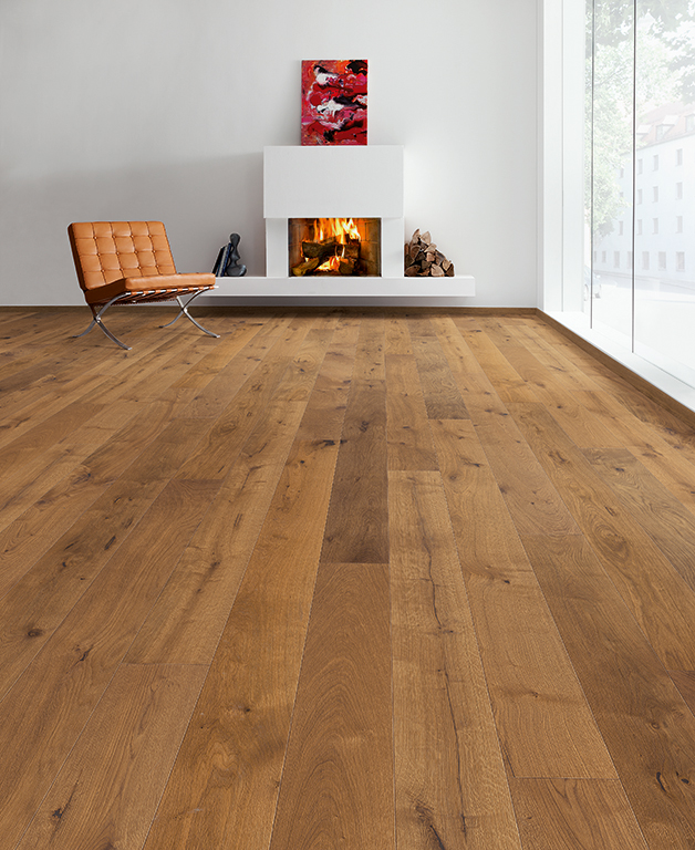Mit einer Eiche-Landhausdiele entscheiden Sie sich für einen Boden, der Generationen überdauert – robust, langlebig und dabei stets stilvoll.