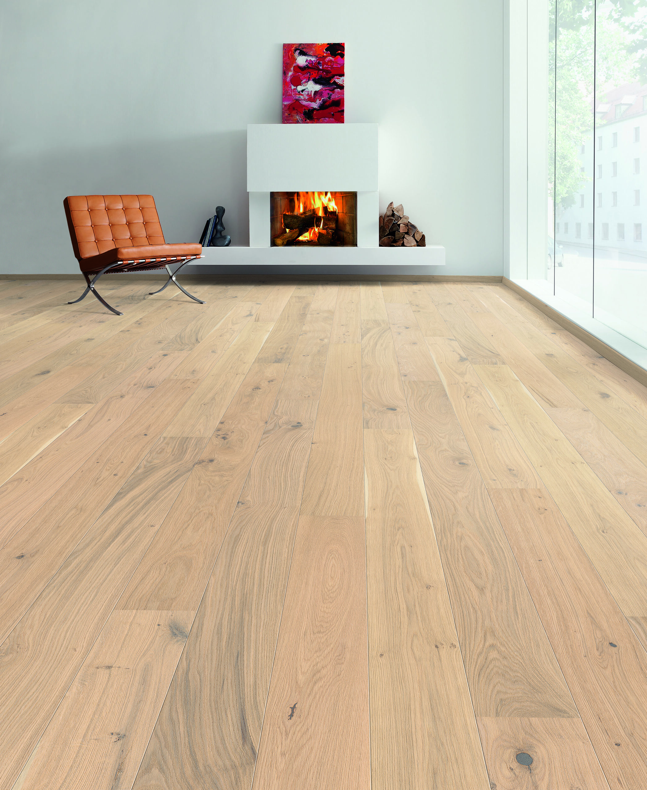 Unsere Landhausdiele Eiche ,,Ammersee“ stammt aus alpenländischer Produktion und sorgt mit ihrem weiß-geölten Finish für ein freundliches und offenes Wohngefühl. Die helle, freundliche Ausstrahlung unterstreicht gleichzeitig die natürliche Maserung des Holzes. So entsteht ein modernes, elegantes Bodenbild mit zeitloser Wirkung.